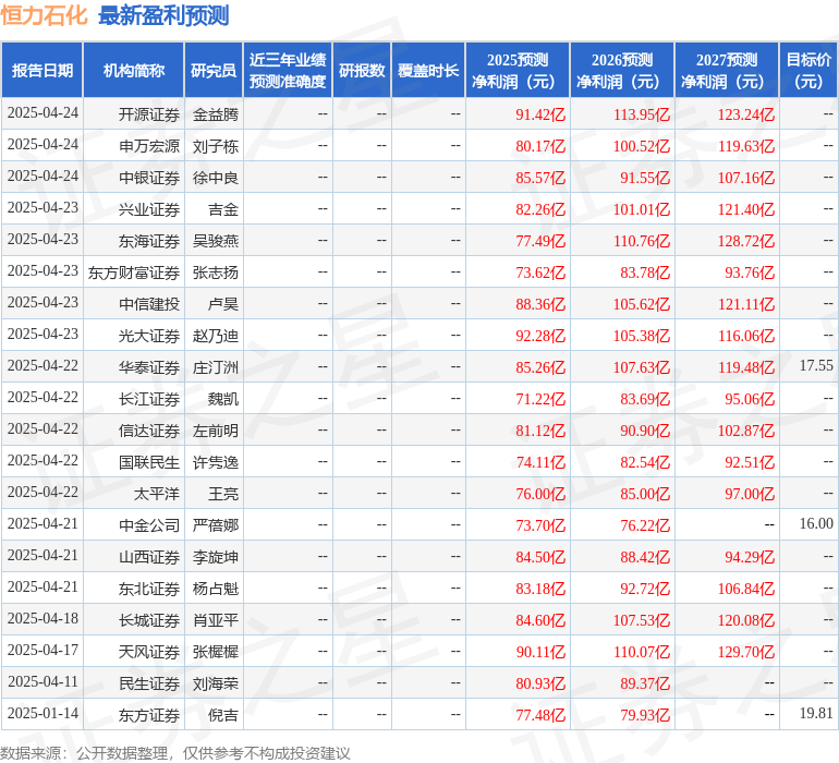 最新盈利预测明细如下: